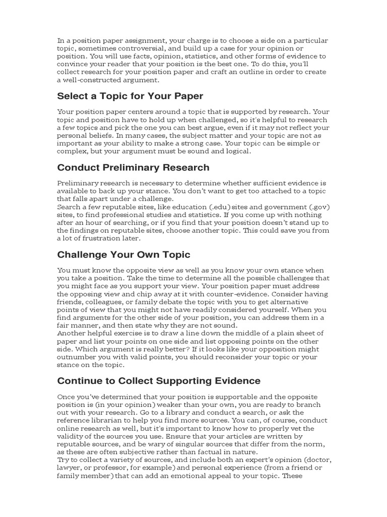 Example Of Position Paper With Introduction Body And Conclusion, 8 3 Drafting Writing For Success, Many paper assignments call for you to establish a position and defend that position with an effective argument.. A position paper is a diplomatic statement of your country's position on the issues before your individual committee. Pestle analysis examples of 5 multinational companies. The conclusion returns briefly to the story an example taken from local or world news events is another kind of illustration. However, some assignments are not argumentative, but rather, they are exploratory. Hence, limiting concluding paragraphs to 10.